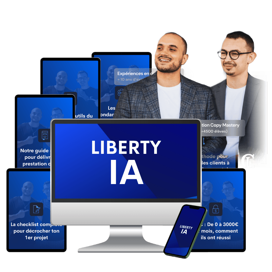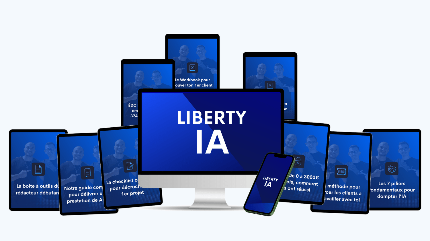Dès ton inscription tu reçois immédiatement l'accès privé au cours en ligne Liberty IA. Tu auras des vidéos ainsi que des ressources pour apprendre à utiliser l'IA et générer tes premiers revenus facilement.