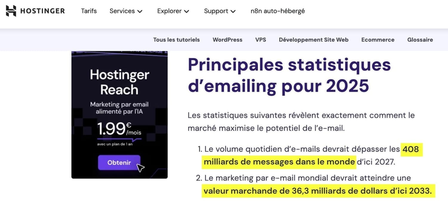 (Il y a 408 milliards d’emails envoyés chaque jour. Oui chaque JOUR.  Cela représente des milliards d’euros générés chaque année)