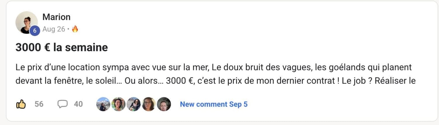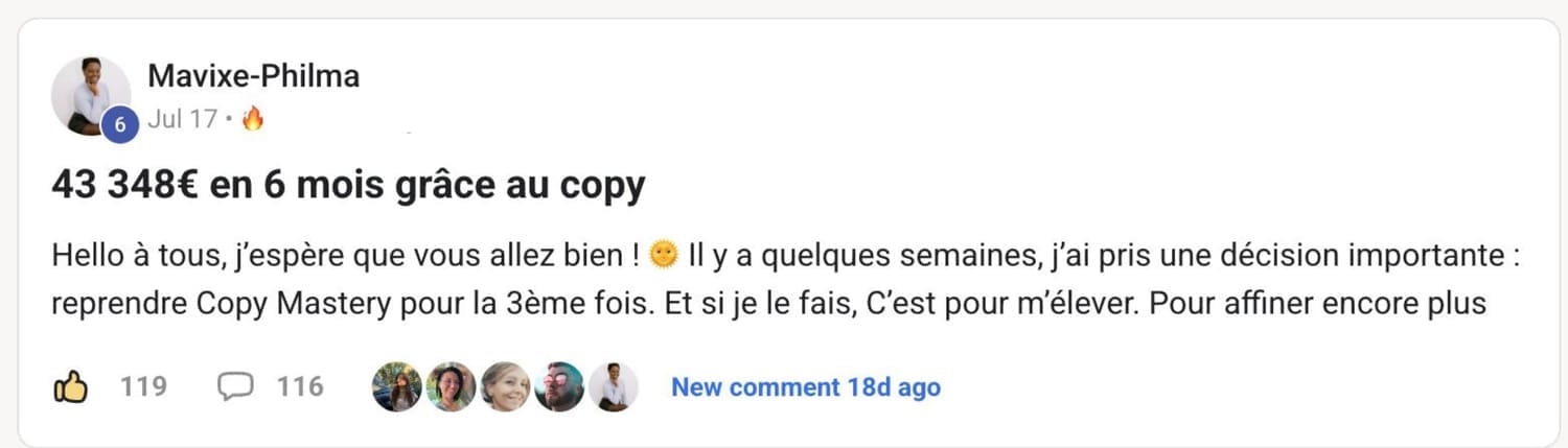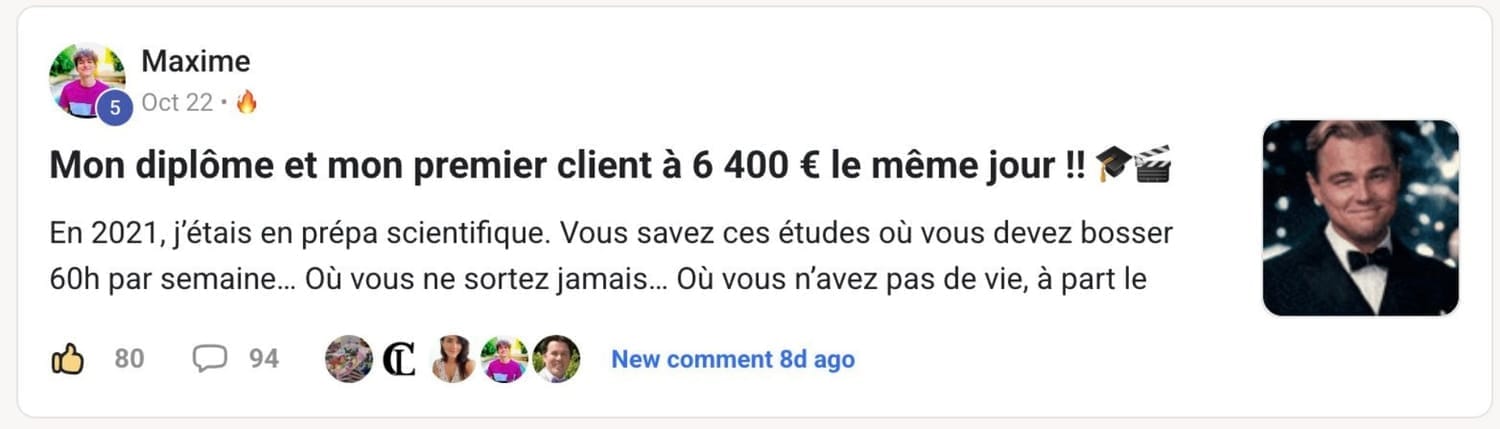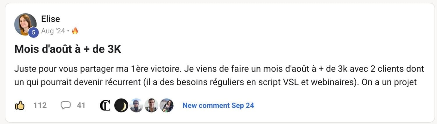 J’ai compris tout de suite que c’était tangible, concret et bien réel. Alors j’ai essayé et j’ai eu un client à 600€ pour la rédaction de 7 emails.