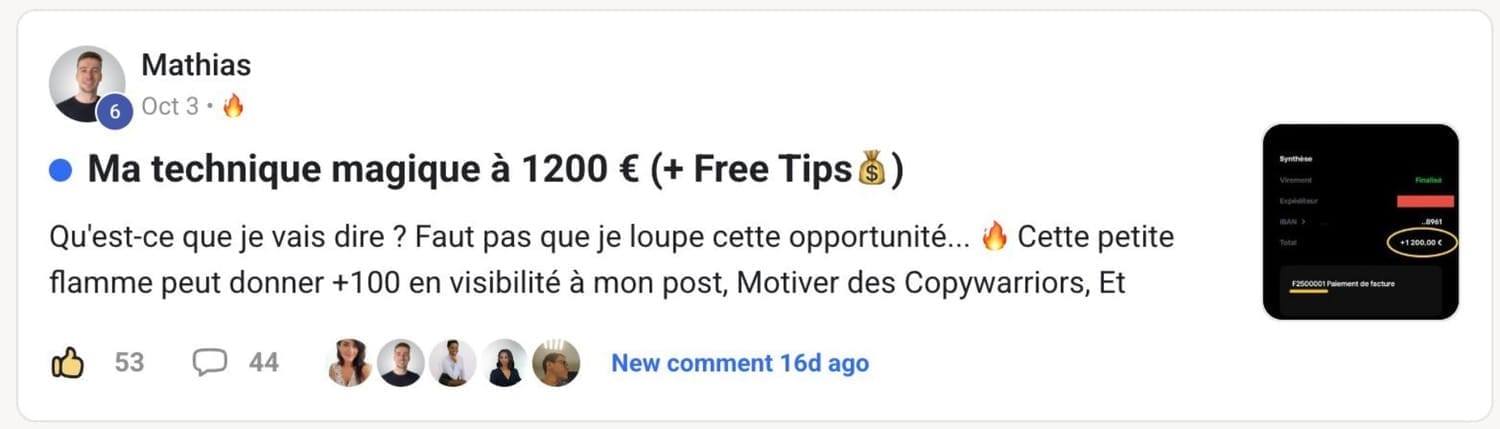 Mathias a fait 1200€ pour la rédaction de 9 emails :